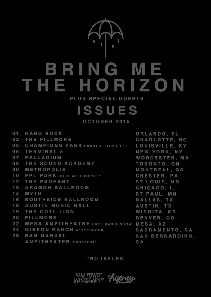The metal band, Bring Me The Horizon, has announced a North American tour, for this October. They will be touring in support of their upcoming album, That’s The Spirit. Issues will be joining the tour, as support. You can check out the dates, details and poster, after the break.