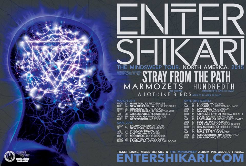 The rock band, Enter Shikari, have announced a North American tour, in support of their upcoming album, Mindsweep, called the “Mindsweep Tour.” Stray From The Path, Marmozets, Hundredth and A Lot Like Birds will be supporting the tour. You can check out the dates, details and poster, after the break.