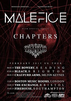 The metal band, Malefice, has announced a small UK tour, for this February. Chapters and Confessions Of A Traitor will be joining the tour, as the special guests. You can check out the dates, details and poster, after the break.