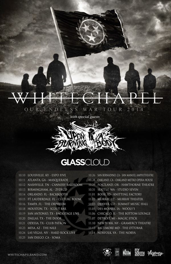 The metal band, Whitechapel, has announced a U.S. tour, called the “Our Endless War Tour,” for this fall. Upon A Burning Body and Glass Cloud will be on the tour as support. You can check out the dates, details and poster, after the break.