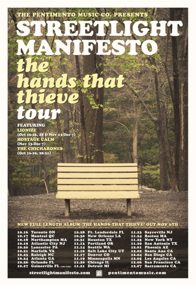 Nathan from Lionize here checking in with everyone from the Streetlight Manifesto ‘hands that thieve’ tour 2012 featuring Lionize and the Chicharones. The tour is off to a solid start with the Canadian shows living up to their reputation as rowdy and receptive. The rest of the dates so far in the north east USA have been pretty slamming as well. Northampton, Mass – well done. Opening each show is the Chicharones from Portland, OR. They are a live and energetic hip hop act who’s passion for the beastie boys and old school hop hop are worn in great fashion on their collective sleeve. After that Lionize takes the stage and its been better and better each night. We have been road testing a few new songs and have been switching the set up night after night to keep it fun and refreshing. We haven played the same jam twice and we are improving a lot. With a 45 minute set time we can spread our wings a bit more and get weird. Finally Streetlight Manifesto has been very tight, aggressive and fun. They as playing new songs an the crowd sings a long louder to the older ones than ever before. We are stoked to be out here continuing to cultivate our relationship with streetlights fans and bring our loud and funky sound to country.