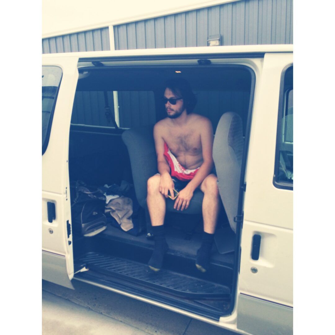 Our friend Patrick Bates finding his Sweet Spot in the tour van.
