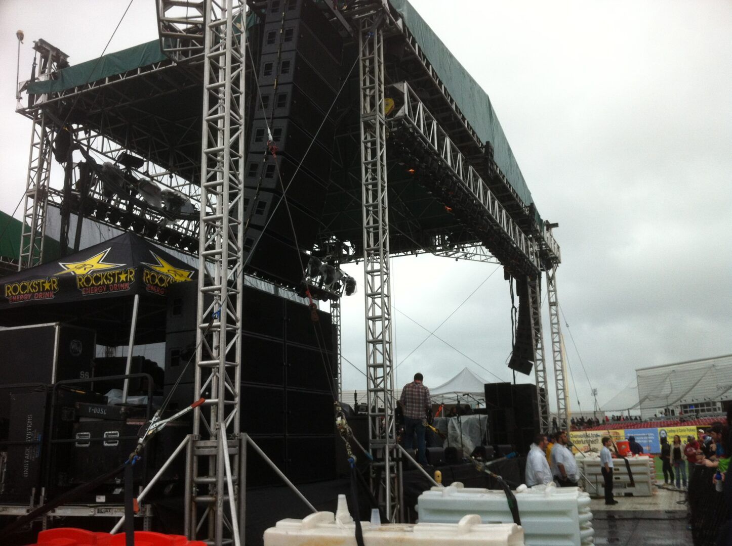 … and even had golf carts with trailers to haul all of our equipment over to the stage. A very nice stage with a killer sound system. I get a boner when I see a set up like this: