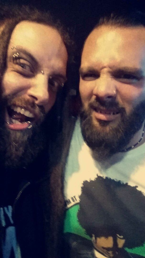 Day 22 was in Las Vegas at the Adrenaline Bar. I played this club a bunch in my old band when it was called the Cheyenne Saloon. This show started out weird for me cause I passed out on the bus and woke up just a couple songs before we played. The show ended up killing and was probably one of my favorite on the tour. Jesse Leach (Killswitch Engage) was out to hang with the 36 guys. We ended up kidnapping him for a little bit to party on our bus then drank hard back in the bar together. This was also the first day I think we all thawed out since Phoenix!