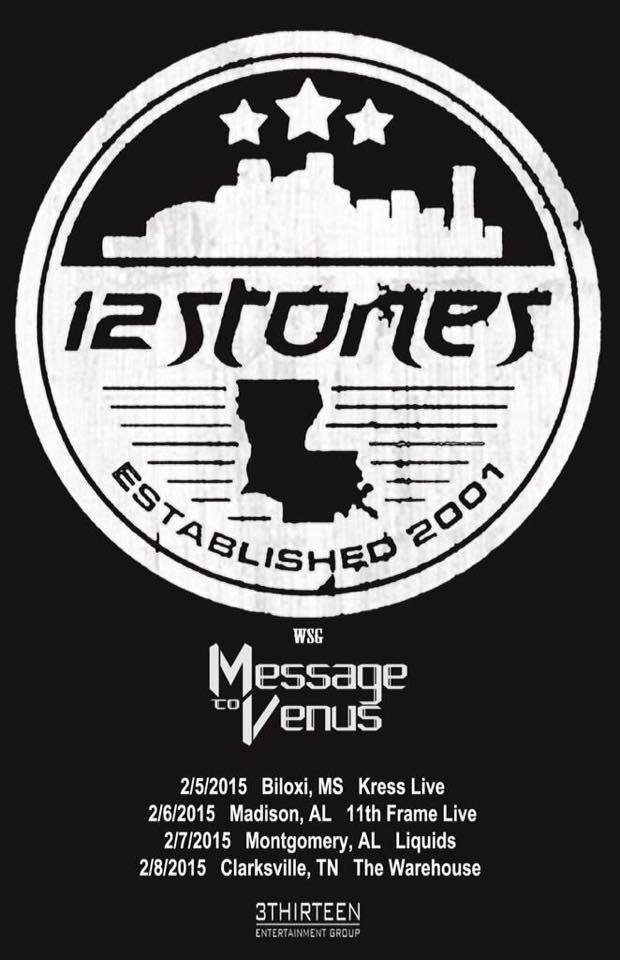 The alternative rock band, 12 Stones, has announced a short U.S. tour, for this February. Message to Venus will be joining the tour, as support. You can check out the dates, details and poster, after the break.