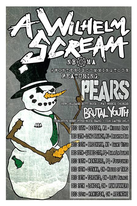 The melodic hardcore punk band, A Wilhelm Scream, have announced a brief Canadian tour, called the “Winter Is Cumming Tour,” for December. PEARS and Brutal Youth will be joining the tour, as support. You can check out dates, details and poster, after the break.