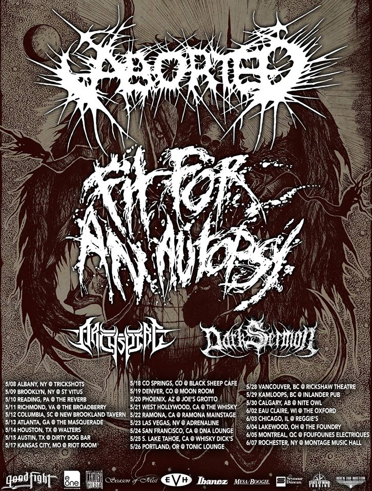 The death metal band, Aborted, has announced a co-headlining North American tour with Fit For An Autopsy, for this spring. Archspire and Dark Sermon will be joining the tour, as support. You can check out the dates, details and poster,…