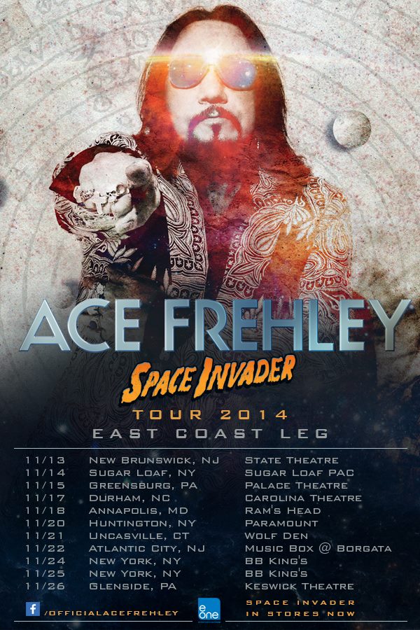 The rock musician, Ace Frehley, has announced a short East Coast tour, called the “Space Invader Tour,” for this November. He will be touring in support of his new album, Space Invader. You can check out the dates, details and poster, after the break.