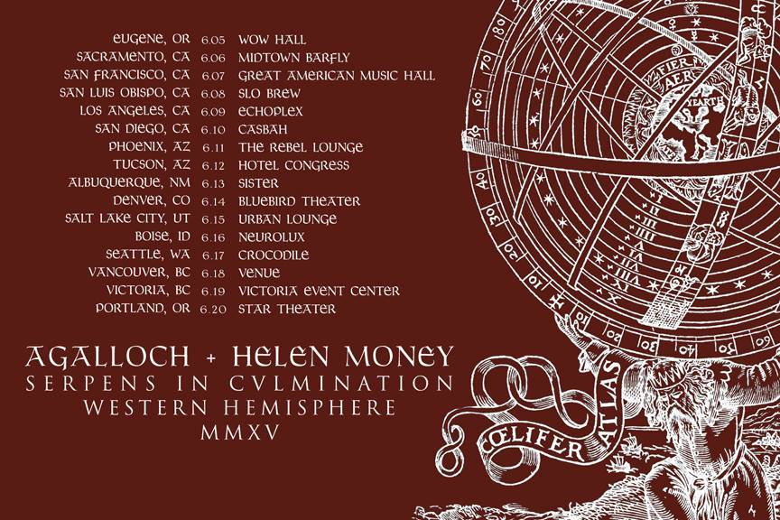 The metal band, Agalloch, have announced a summer tour, to support their album, The Serpent & The Sphere, called the “Serpens In Cvlmination Western Hemisphere Tour.” Helen Money will be supporting the tour. You can check out the dates, details and poster, after the break.