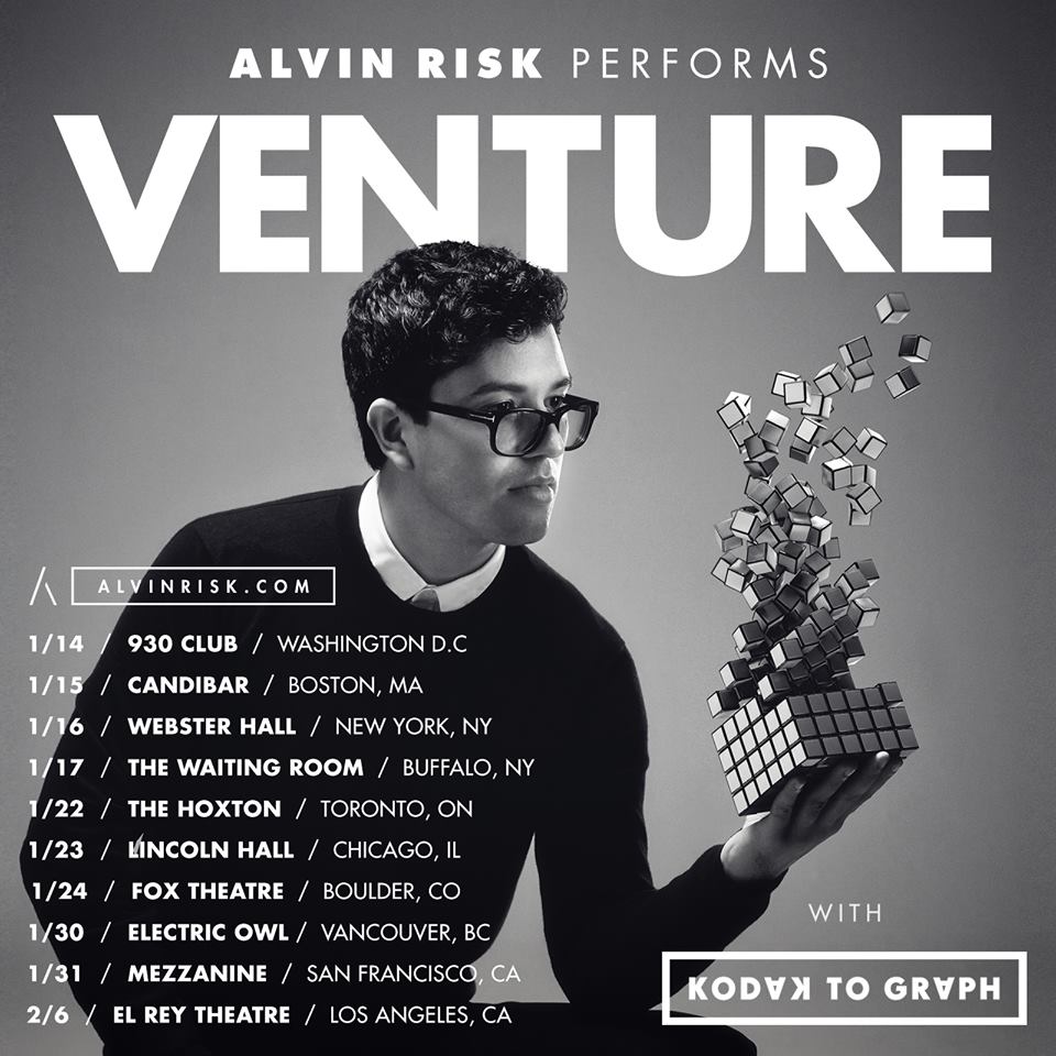 The electronic producer/singer, Alvin Risk, has announced a short North American tour, called the “Venture Tour,” for this winter. He will be touring in support of his latest EP, Venture. Kodak To Graph will be joining the tour, as support. You can check out the dates, details and poster, after the break.