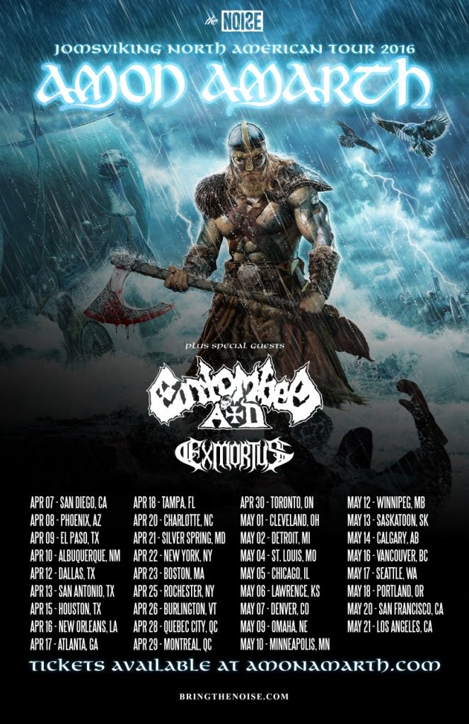 The metal band, Amon Amarth, have announced a North American tour, called the “Jomsviking North American Tour 2016,” for April and May. They will be touring in support of their new release, Jomsiviking. Entombed A.D. and Exmortus will be on…