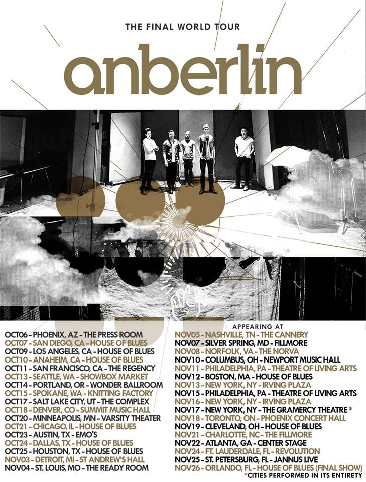 The alternative rock band, Anberlin, have announced that Lakes, The Weather, Mike Herrera and ’68 will be the support for their final tour as a band. The tour will be hitting cities in the United States, in the fall. You can check out the dates, details and poster, after the break.