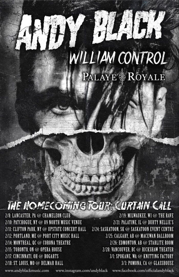 The rock artist, Andy Black (from Black Veil Brides), has announced a North American tour, called the “The Homecoming Tour: Curtain Call,” for February and Mark. He will be touring in support of his debut solo album, The Shadow Side….