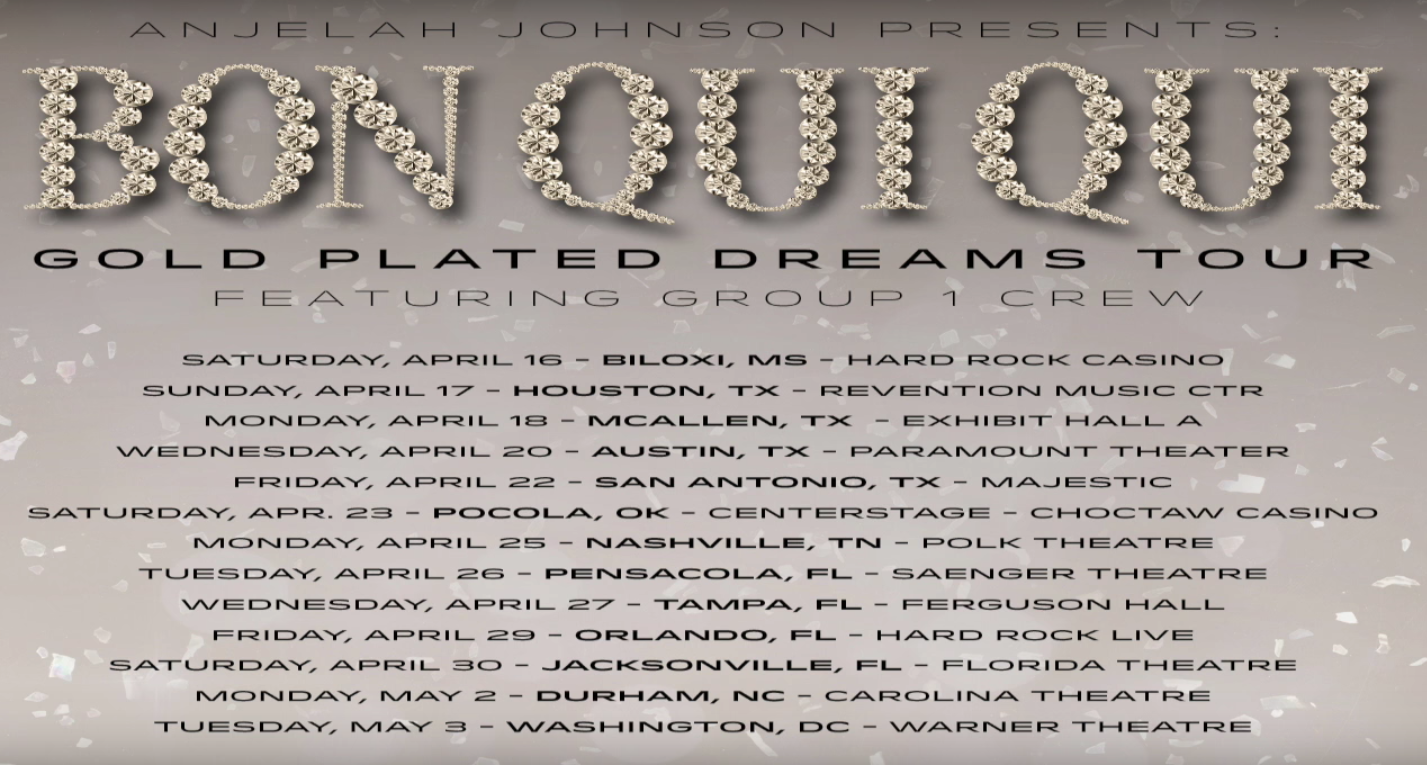 The comedian, Anjelah Johnson, has announced a U.S. tour, called the “Bon Qui Qui: Gold Plated Dreams Tour,” for April and May. Group 1 Crew will be joining the tour, as support. You can check out the dates, details and poster, after…