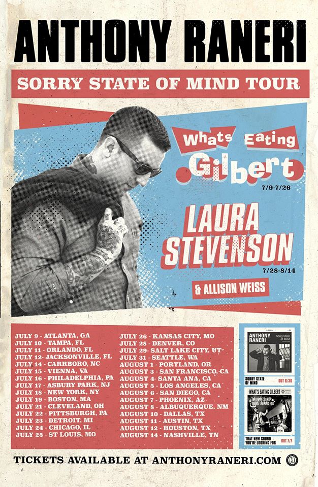 The rock singer-songwriter, Anthony Raneri (of Bayside), has announced a U.S. tour, called the “Sorry State of Mind Tour,” for this summer. What’s Eating Gilbert (Chad Gilbert from New Found Glory), Laura Stevenson and Allison Weiss will be on the tour,…