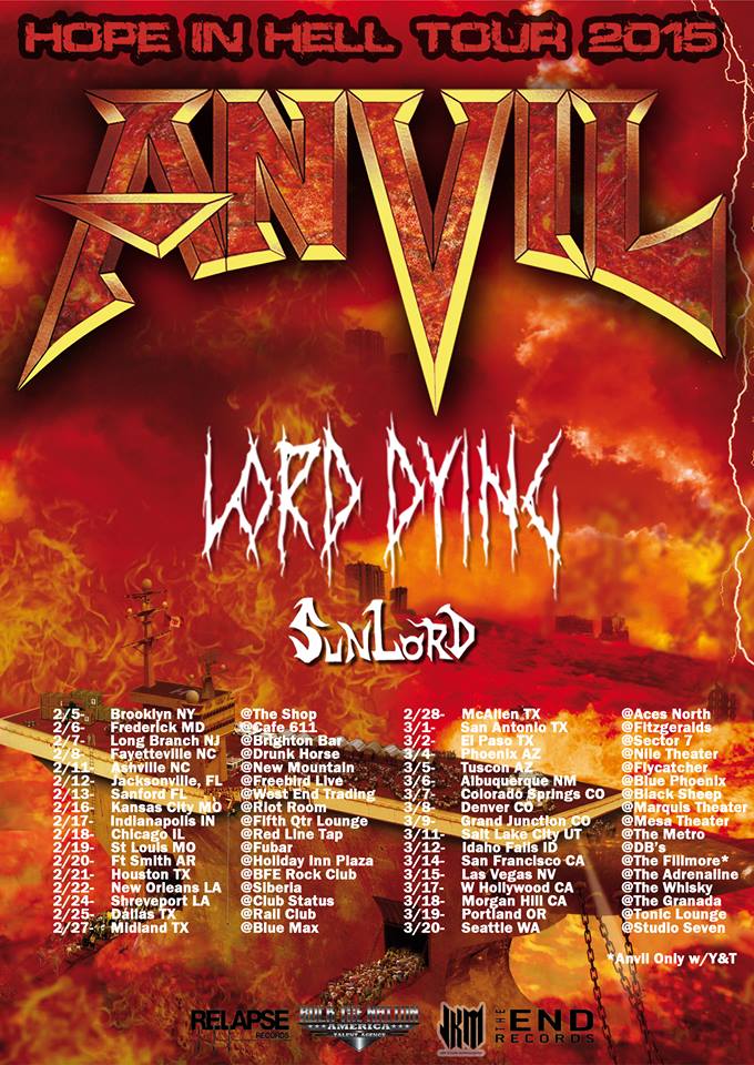 The metal band, Anvil, have announced a U.S. tour for winter, called the “Hope In Hell Tour.” Lord Dying and Sunlord will be joining the tour, as support. You can check out the dates, details and poster, after the break.