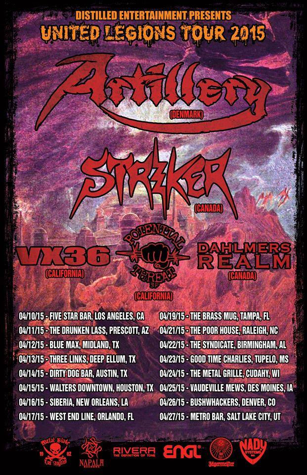The metal band, Artillery, have announced a U.S. tour, for the spring, called the “United Legions Tour.” They will be joined by Striker, VX36, Potential Threat and Dahlmers Realm, as support. You can check out the dates, details and poster, after the break.