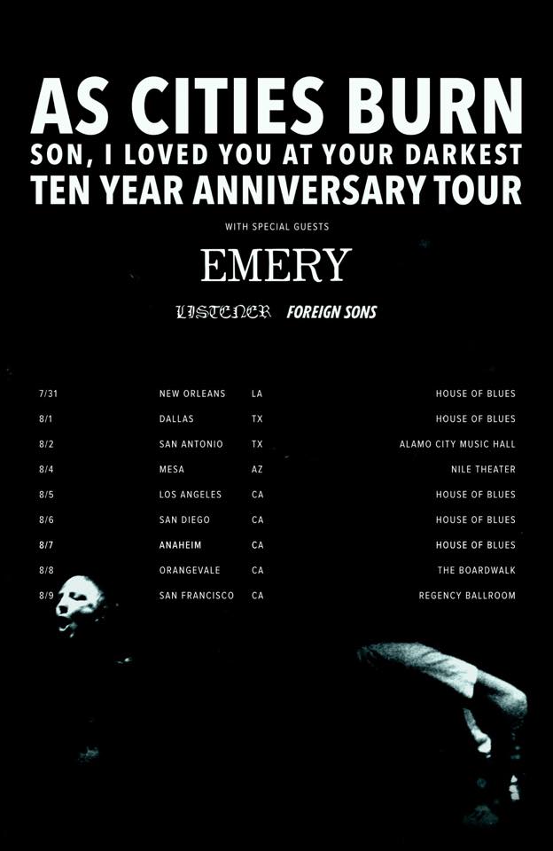 The rock band, As Cities Burn, has announced a short U.S. tour to celebrate the 10-year anniversary of their album, Son, I Loved You At Your Darkest. Emery, Listener and Foreign Sons will be joining the tour, as support. You…