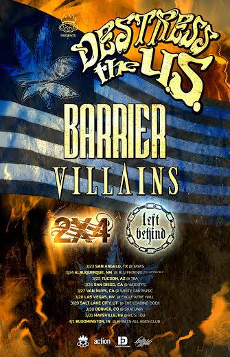 The heavy metal band, Barrier, has announced their “Destress the U.S. Tour,” with dates in March and April. They will be supported by Villains, 2×4 and Left Behind. You can check out the dates, details and poster, after the break.