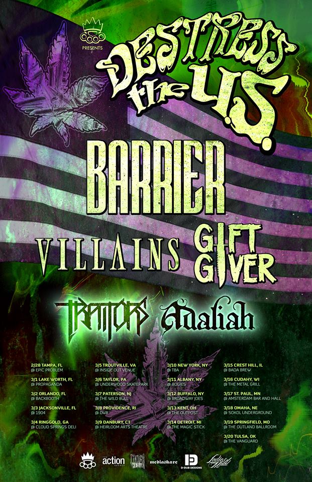 The heavy metal band, Barrier, has announced a U.S. tour, called “Destress The U.S. Tour,” for spring 2015. Villains, Gift Giver, Traitors and Adaliah will be joining the tour, as support. You can check out the dates, details and poster, after the break.