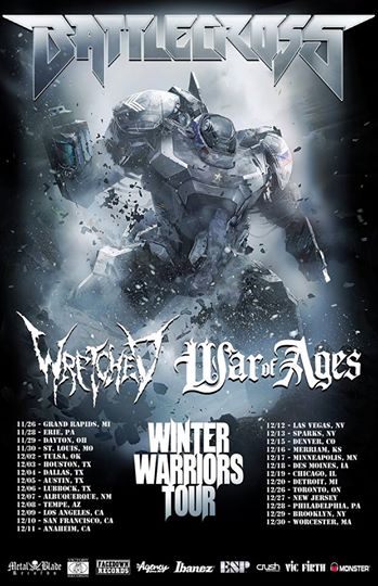 The metal band, Battlecross, has announced a North American tour, called the “Winter Warriors Tour,” for this winter. Wretched and War of Ages will be joining the tour as support. You can check out the dates, details and poster, after the break.