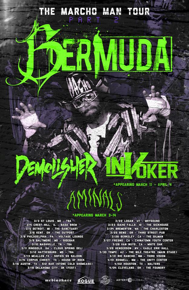 The metal band, Bermuda, has announced a U.S. tour, called “The Marcho Man Tour Part 2,” for March and April. Demolisher, Invoker and Animals will be joining the tour, as support. You can check out the dates, details and poster, after the break.