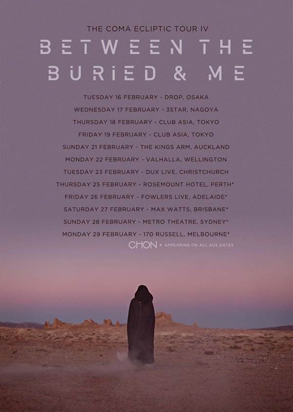 The metal band, Between The Buried And Me, have announced “The Coma Ecliptic Tour IV,” with dates in Japan, New Zealand and Australia. The tour is in support of their newest album, Coma Ecliptic. All the Australian dates will be supported by Chon. You can check out the dates, details and poster, after the break.