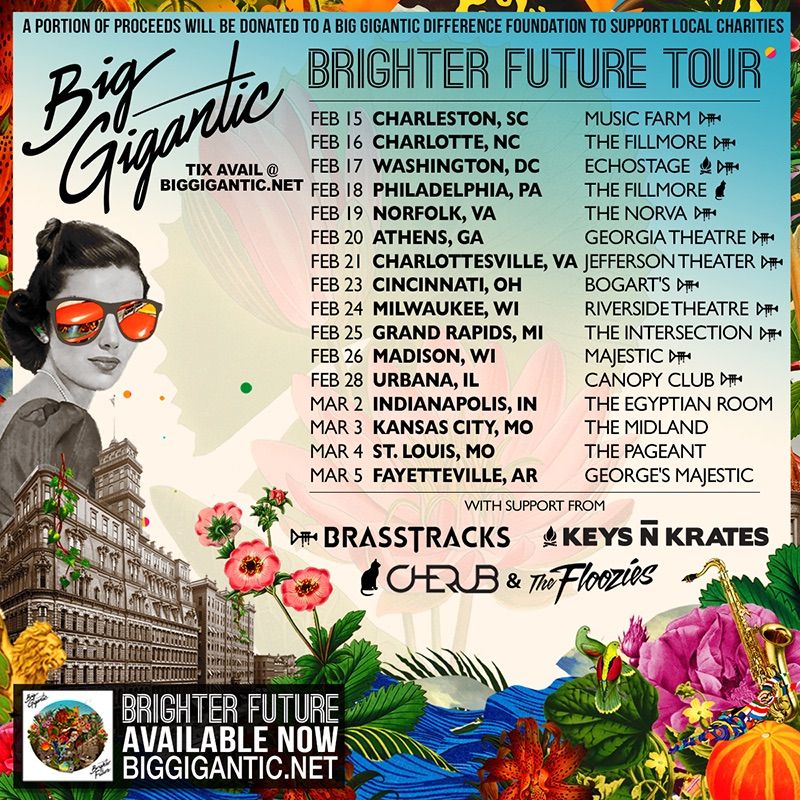 The electronic duo, Big Gigantic, has announced a U.S. tour, called the “Brighter Future Tour,” for February and March, with Brasstracks, Keys N Krates, Cherub and The Floozies.