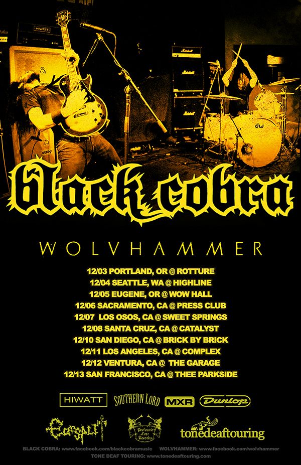 The rock band, Black Cobra, has announced a small West Coast tour, for this December. Wolvhammer will be joining the tour, as support. The tour will begin on December 3 in Portland, OR and come to an end on December 13 in San Francisco, CA. You can check out the dates, details and poster, after the break.
