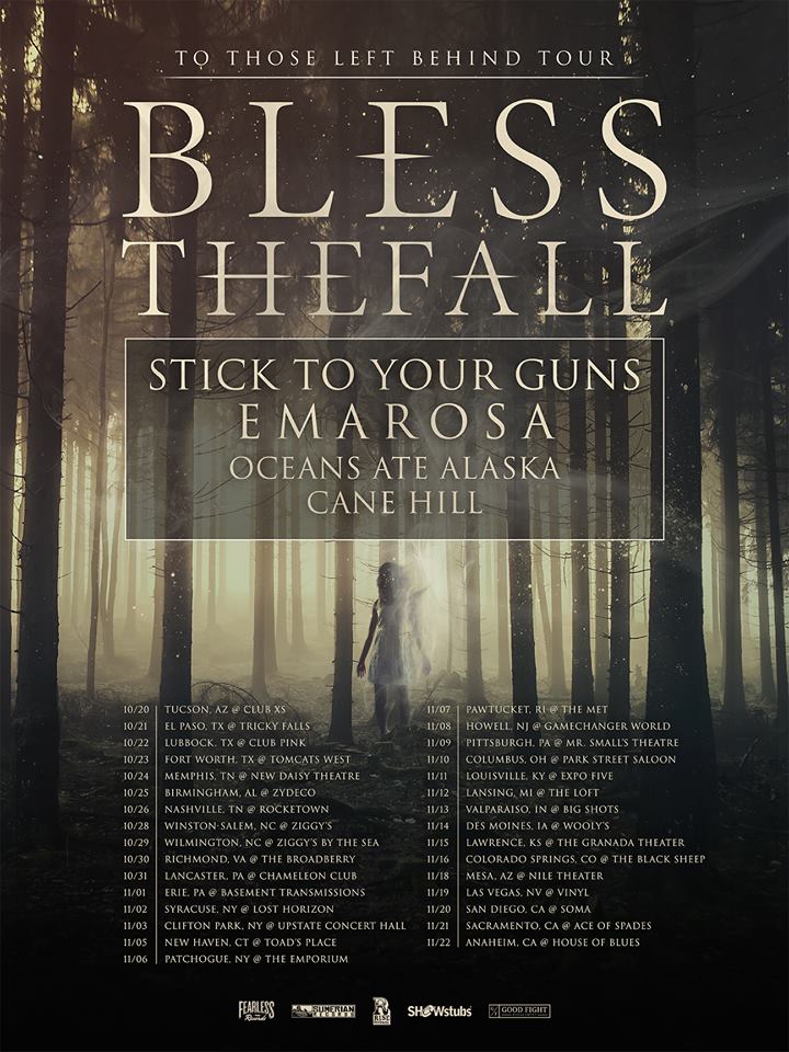 The hard rock band, Blessthefall, have announced a fall tour in the U.S., called the “To Those Left Behind Tour.” They will be joined by Stick To Your Guns, Emarosa, Oceans Ate Alaska and Cane Hill, as support. You can check out the dates, details and poster, after the break.