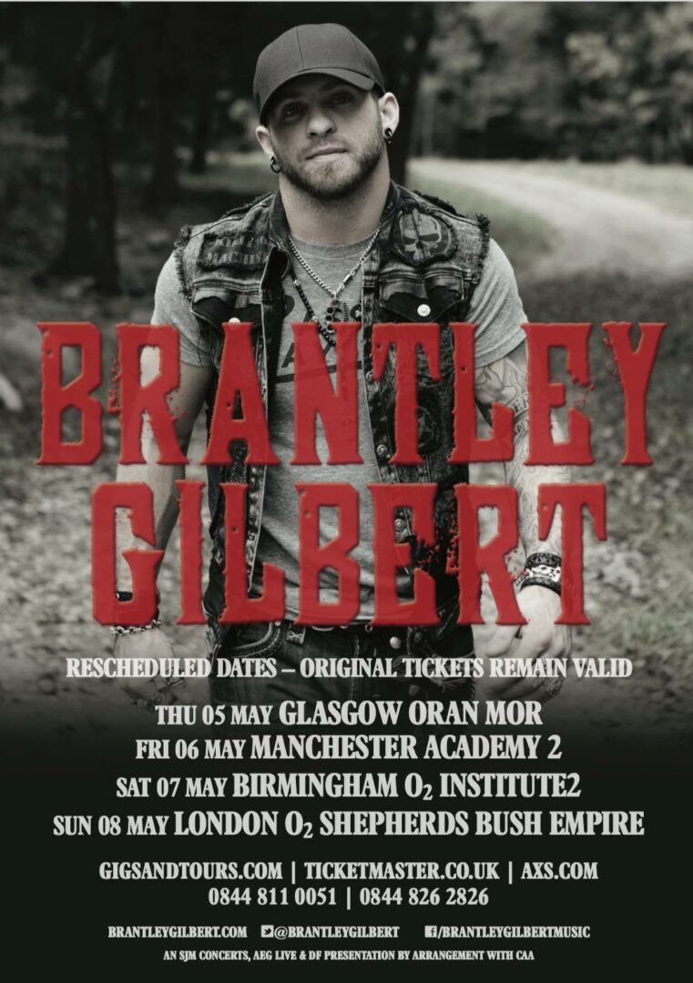 The country singer, Brantley Gilbert, has announced his rescheduled European shows, for May. He is touring in support of his latest album, Just As I Am. You can check out the dates, details and poster, after the break.