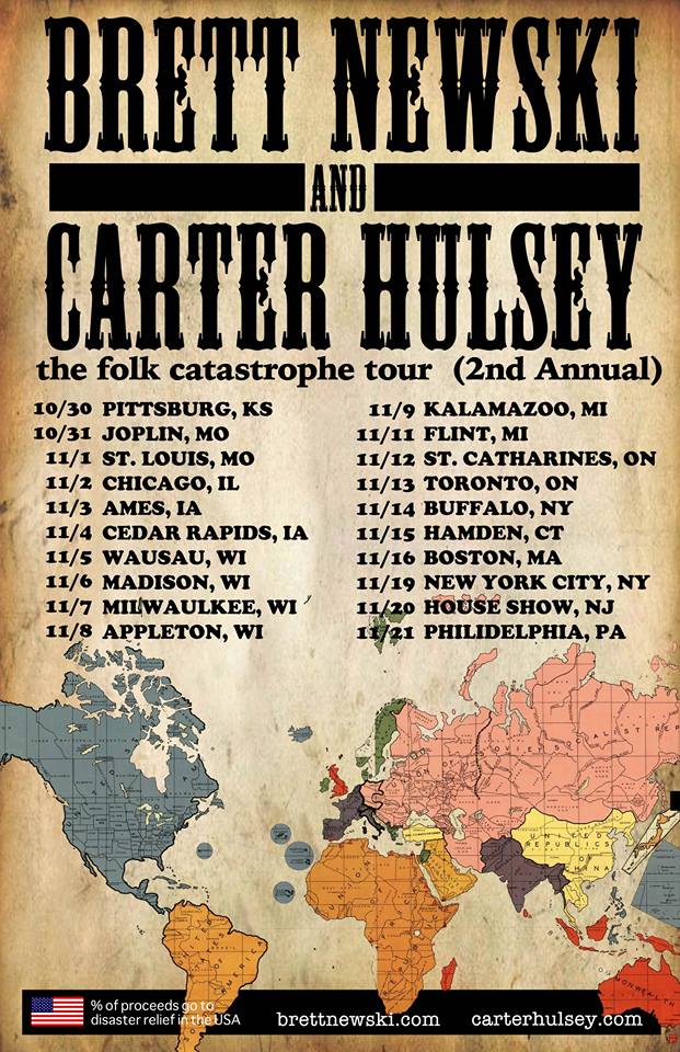 The folk artist, Carter Hulsey, has announced a North American tour with Brett Newski, called “The Folk Catastrophe Tour,” for this fall. You can check out the dates, details and poster, after the break.