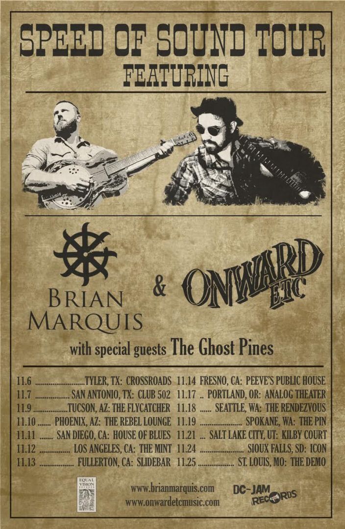 The indie folk artist, Brian Marquis, has announced a U.S. tour with Onward, ETC, called the “Speed of Sound Tour.” The Ghost Pines will be joining the tour, as support. You can check out the dates, details and poster, after the break.