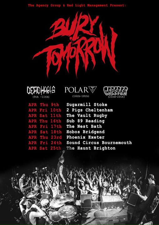 The metal band, Bury Tomorrow, have announced an intimate UK headline tour, for April. Supporting this tour will be Dead Harts, Polar and Creeper, all on select dates. You can check out the dates, details and poster, after the break.