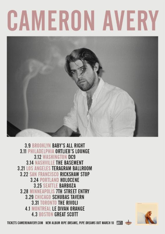 The blues/folk artist, Cameron Avery, has announced a North American tour, for March and April. This tour is in support of his album, Ripe Dreams, Pipe Dreams.