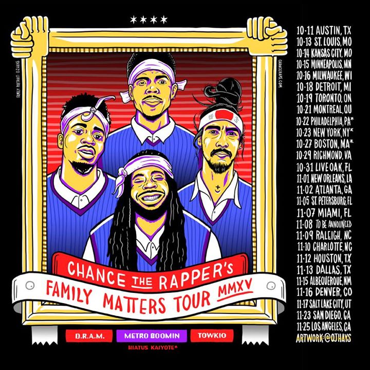 The hip hop artist, Chance the Rapper, has announced a fall North American tour, called the “Family Matters Tour.” He will be touring in support of his latest album, Surf. D.R.A.M., Metro Boomin and Towkio will be joining the tour, as support….