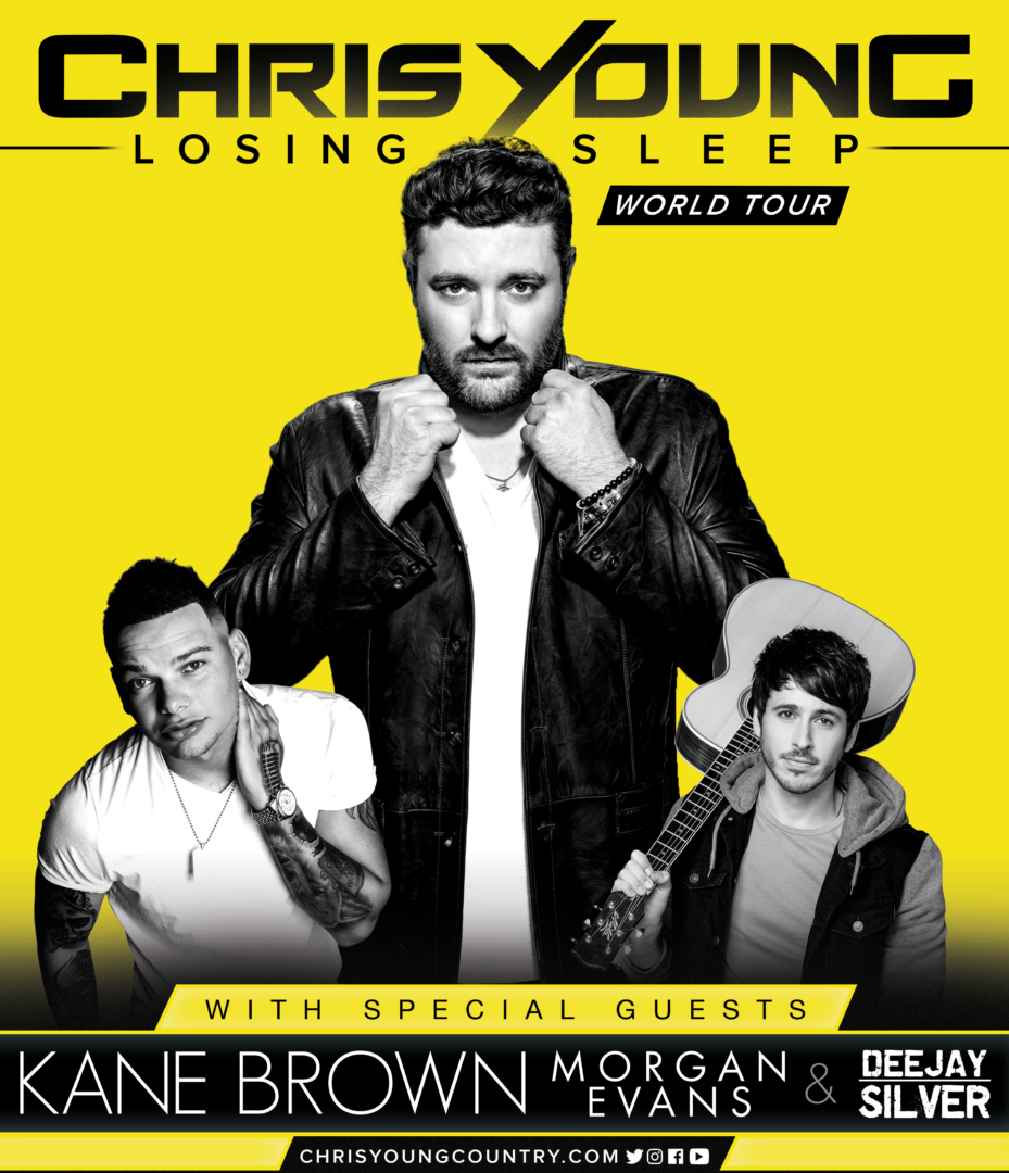 The country artist, Chris Young, has announced U.S tour dates, for the “Losing Sleep World Tour”, for February through May. Young is touring in support of his newest album, Losing Sleep. Kane Brown, LANCO, Morgan Evans, and Dee Jay Silver will join select dates of the tour, as support. You can check out the dates, details and poster, after the break.