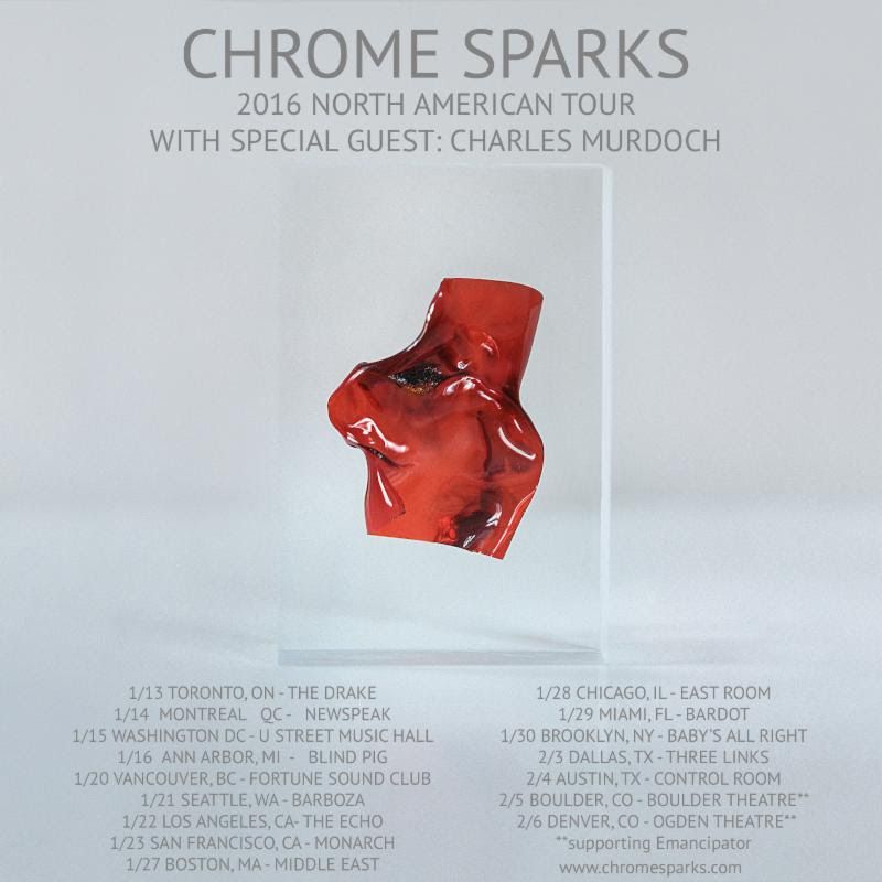The electronic artist, Chrome Sparks, has announced a North American tour, for January and February. Charles Murdoch will be on the tour, as support. You can check out the dates, details and poster, after the break.