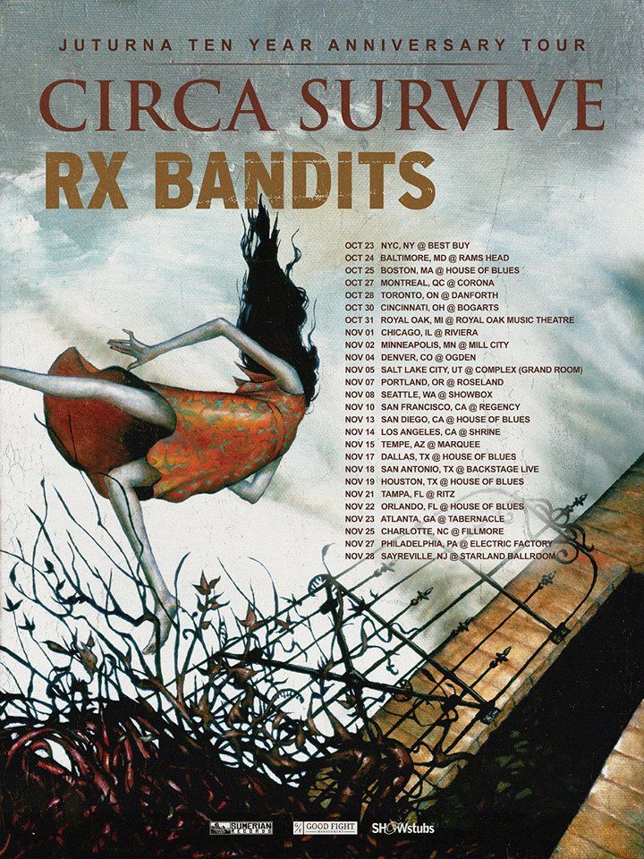 The rock band, Circa Survive, have announced a fall North American tour with RX Bandits. The tour will be in celebration of the ten year anniversary of their album, Juturna. They will be playing the album in it’s entirety. You can check out the dates, details and poster, after the break.
