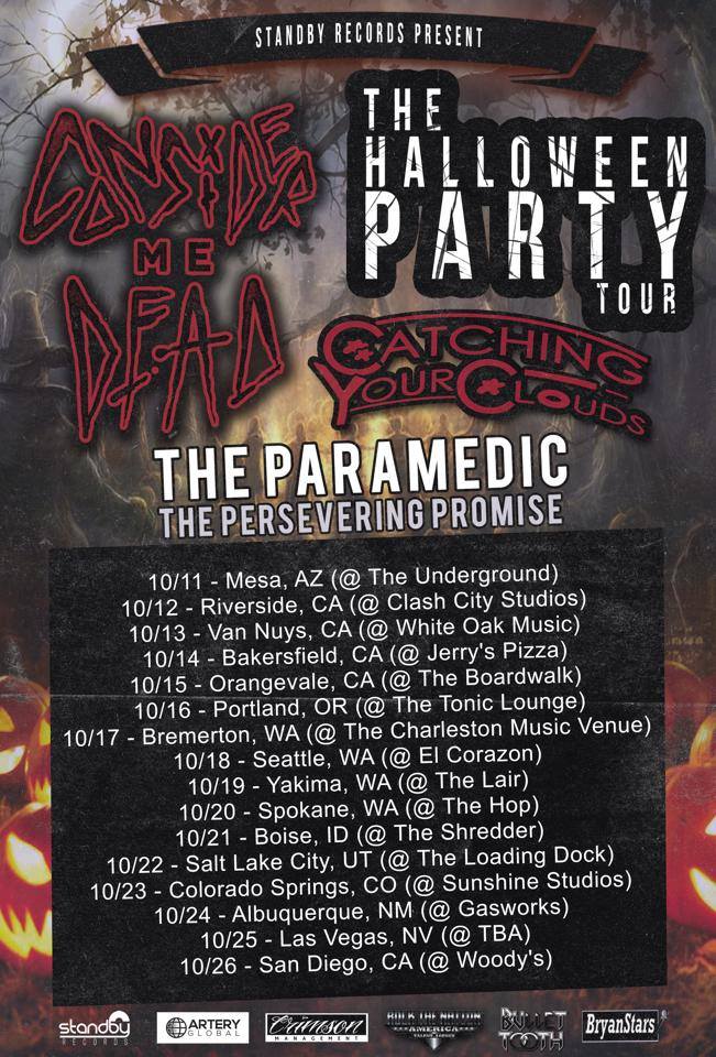 The electronic rock band, Consider Me Dead, have announced “The Halloween Party Tour,” for this fall in the United States. CatchingYourClouds, The Paramedic and The Persevering Promise will be joining as support. You can check out the dates, details and poster, after the break.