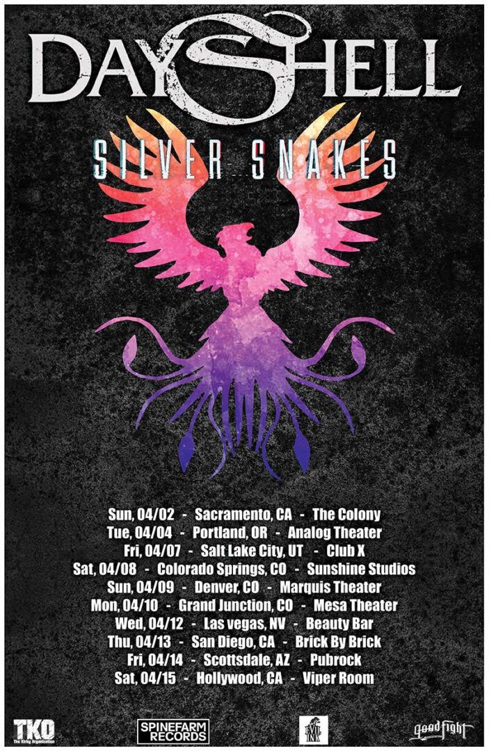 The hard rock band, Dayshell, announces a West Coast tour, for April. Silver Snakes will be on the tour, as support.