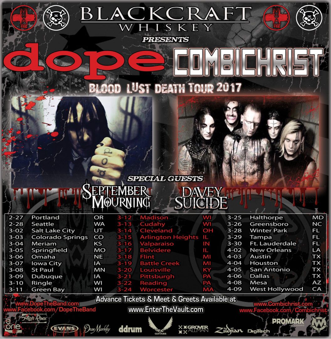 The heavy metal band, DOPE, have announced a co-headline U.S. tour with Combichrist, called the “Blood, Lust, Death Tour,” for March and April.