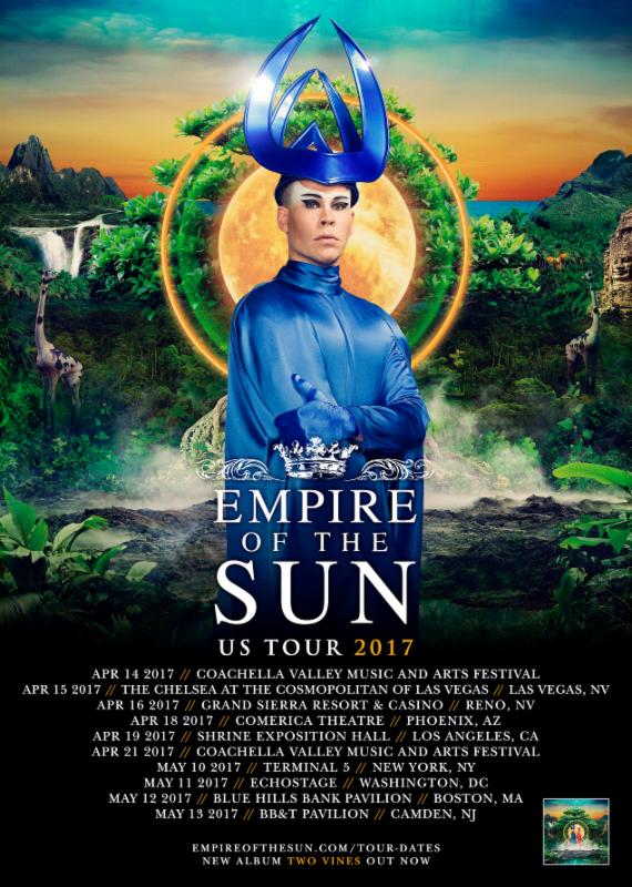 The electronic rock band, Empire of the Sun, has announced a spring U.S. tour, for April and May. This tour is in support of their latest album, Two Vines. The Avalanches and BROODS will join select dates of the tour, as support. You can check the dates, details and poster, after the break.