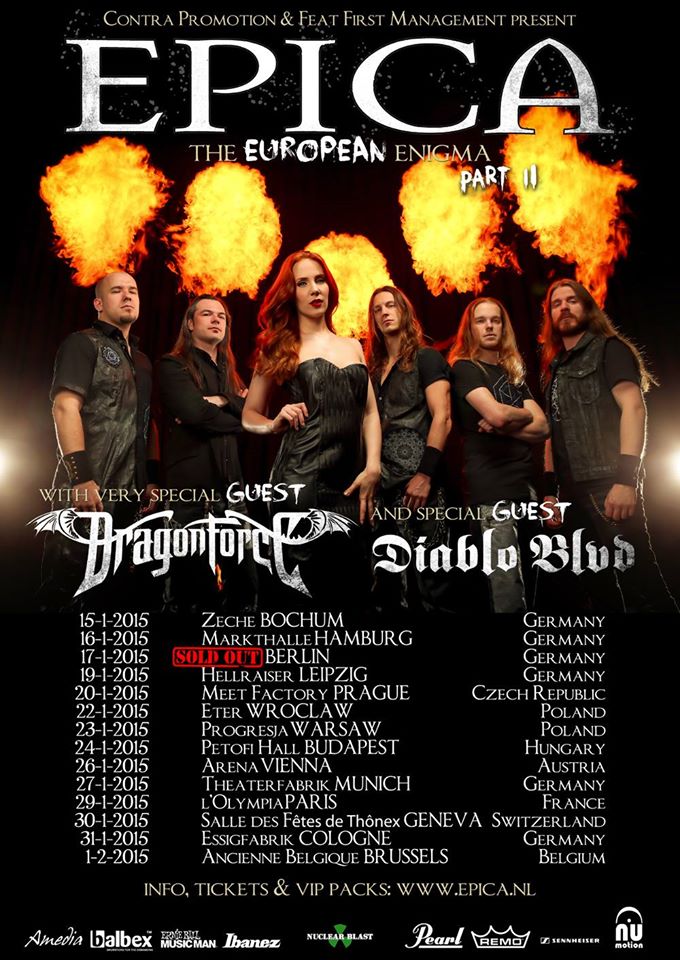 The metal band, Epica, has announced a European tour, called “The European Enigma Tour,” for this winter. Dragonforce and Diablo Blvd will be joining the tour, as support. You can check out the dates, details and poster, after the break.