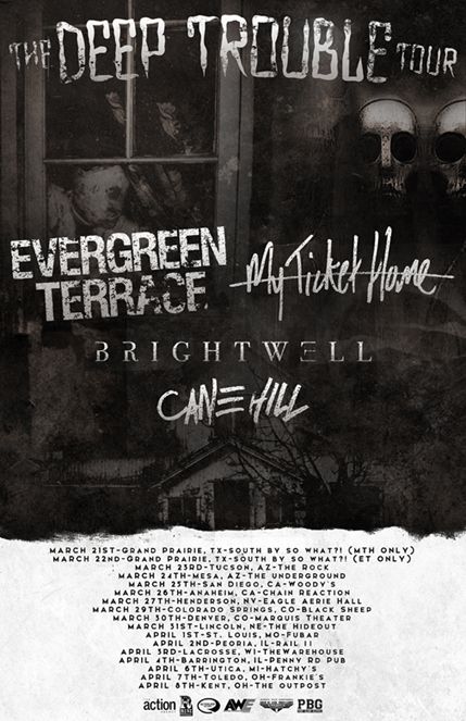 The hardcore band, Evergreen Terrace, has announced a co-headlining U.S. tour, called “The Deep Trouble Tour,” with My Ticket Home, for this spring. Brightwell and Cane Hill will be joining the tour, as support. You can check out the dates, details and poster, after the break.