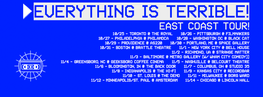 The video blogging group, Everything is Terrible!, have announced an East Coast tour, for this fall. Their live show will feature a “Choose Your Own Destiny” element, wherein the audience will have the ability to choose what they will see and decide where the show will go. You can check out the dates, details and poster, after the break.