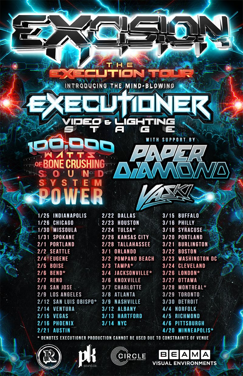 Excision has announced a North American tour titled the “Execution Tour” with support from Paper Diamond and Vaski. You can check out the dates after the break.