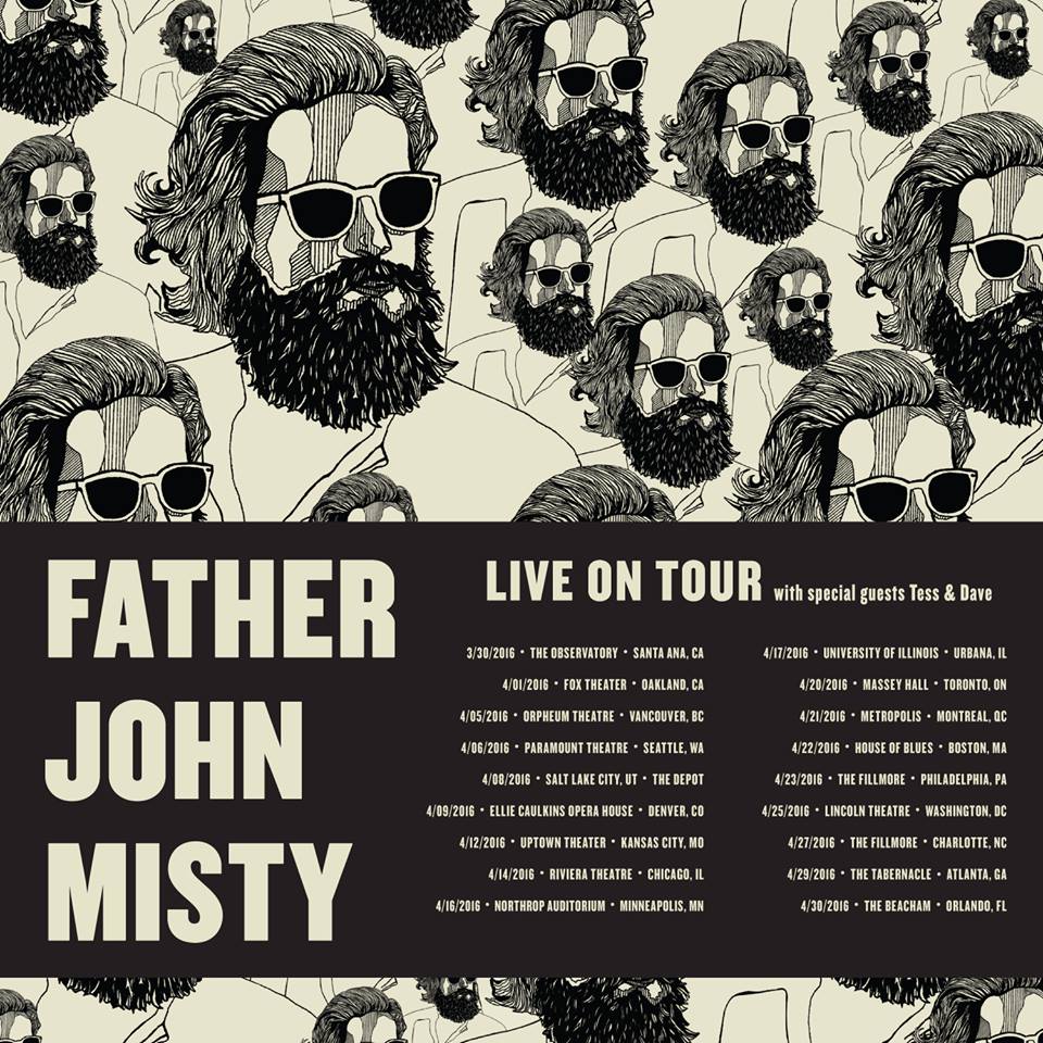 The singer/songwriter, Father John Misty, has announced a North American tour, for March and April. The tour will be in support of his most recent album, I Love You, Honeybear. Tess & Dave will also be on the tour, as support. You can check out the dates, details and poster, after the break.