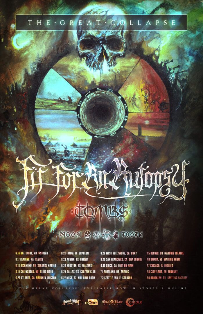 The deathcore band, Fit For An Autopsy, have announced a headline U.S. tour, for June and July. This tour is in support of their latest album, The Great Collapse. Tombs and Moon Tooth will be on the tour, as support. You can check out the dates, details and poster, after the break.