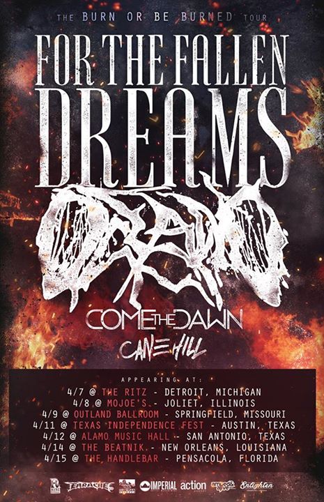 The hardcore band, For The Fallen Dreams, has announced a short U.S. tour, called “The Burn Or Be Burned Tour,” for this April. Oceano, Come The Dawn and Cane Hill will be joining the tour, as support. You can check out the dates, details and poster, after the break.